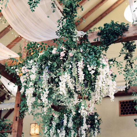 Ashley and Will leaned into the pastel world by incorporating blush, dusty blue, lilacs, and creams with a touch of mauve for dimension for their color palette. The ceremony was adorned by a stunning, lush square arch and the aisle lined with ground arrangements that appeared to be growing naturally straight from the earth. Their reception tables were draped is exquisite dupioni linens and dressed with gold table top accents. The ceiling of the Barr Mansion's ballroom was adorned with sheer drapery, lined with twinkle lights and accented with dripping florals and greenery everywhere the eye could see. They ended their celebration by dancing the night away with their loved ones on the dance floor that showcased their custom monogram.